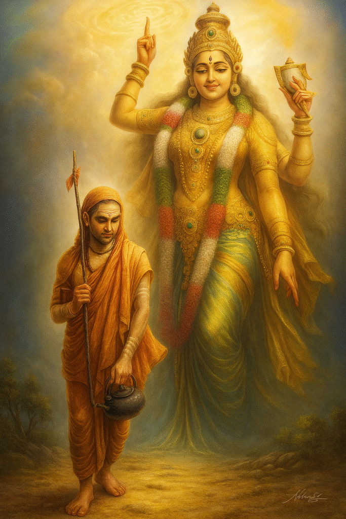 ಭಾವಾರ್ಥ:- ಹೇ! ತಾಯೀ; ವಿಧಿಯ ಆಟದಿಂದಲೂ, ನನ್ನ ಬಡತನದಿಂದಲೂ ಜಡತ್ವದಿಂದಲೂ, ಹಾಗೇಯೇ, ನಿನಗೆ ವಿಧೇಯನಾಗಿರಲು ಶಕ್ಯನಾಗದಿರುವುದರಿಂದಲೂ, ನಿನ್ನ ಅಡಿದಾವರೆಗಳ ಸೇವೆಯಿಂದ ಹೊರದೂಡಲ್ಪಟ್ಟಿರುವೆನು; ಹೇ ಅಮ್ಮಾ ; ಸಕಲೋದ್ಧಾರಿಣಿ ತಾಯಿ ಶಿವೇ,ನೀನು ನನ್ನ ಸರ್ವಾಪರಾಧಗಳನ್ನು ಕ್ಷಮಿಸು. ಅಮ್ಮಾ; ಲೋಕದಲ್ಲಿ ದುಷ್ಟ ಮಗನು ಹುಟ್ಟಬಹುದು, ಆದರೆ ದುಷ್ಟ ತಾಯಿಯು ಎಲ್ಲಿಯೂ ಕಾಣಲು ಸಿಗಲಾರದು.
